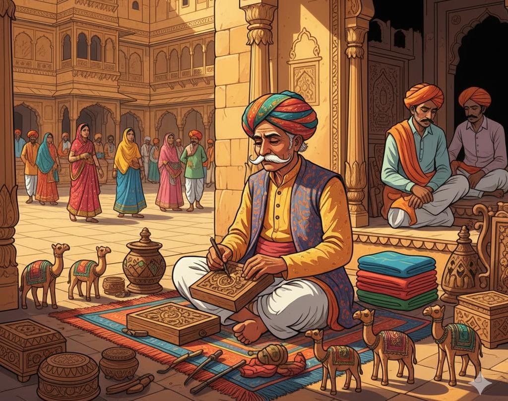 Stay at heritage hotels, guided fort and haveli tours, desert safari, and local market exploration. Breakfast included.